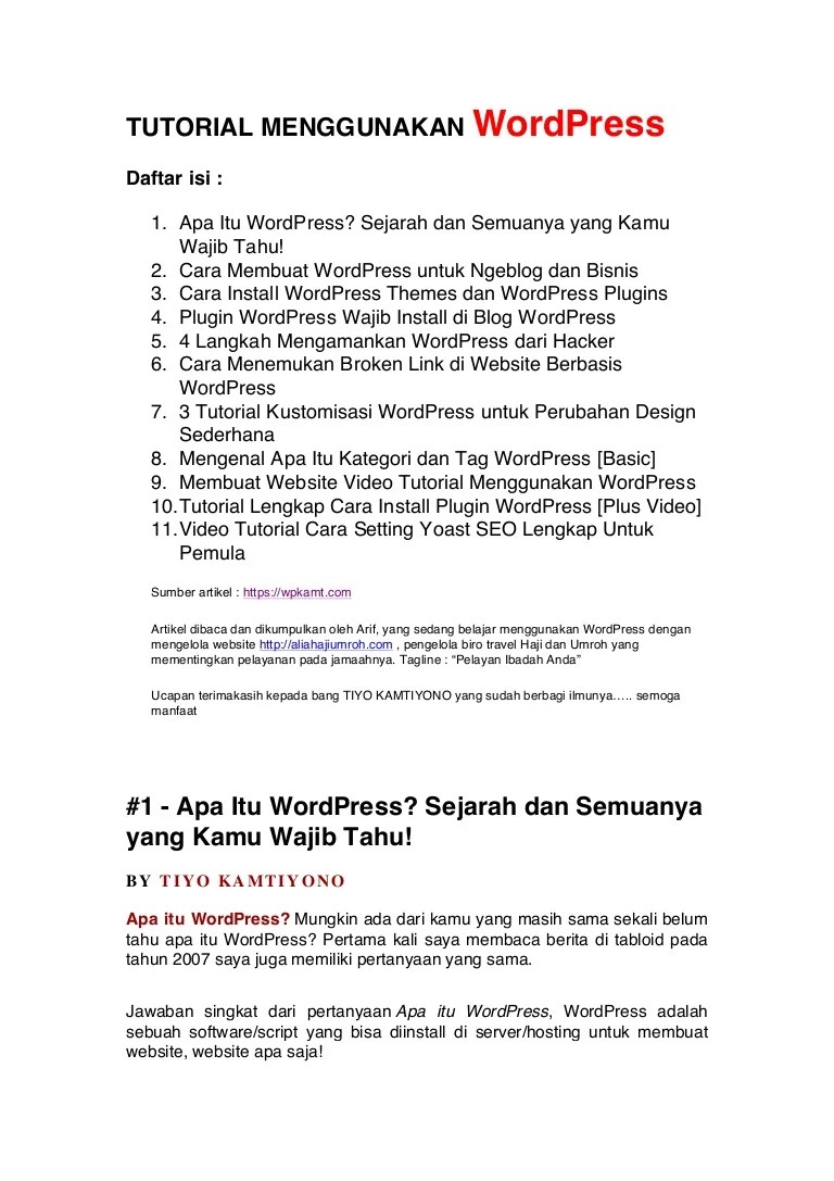 Pusat panduan wordpress ini saya susun khusus untuk anda yang ingin belajar cara membuat website menggunakan wordpress dan menghasilkan uang.