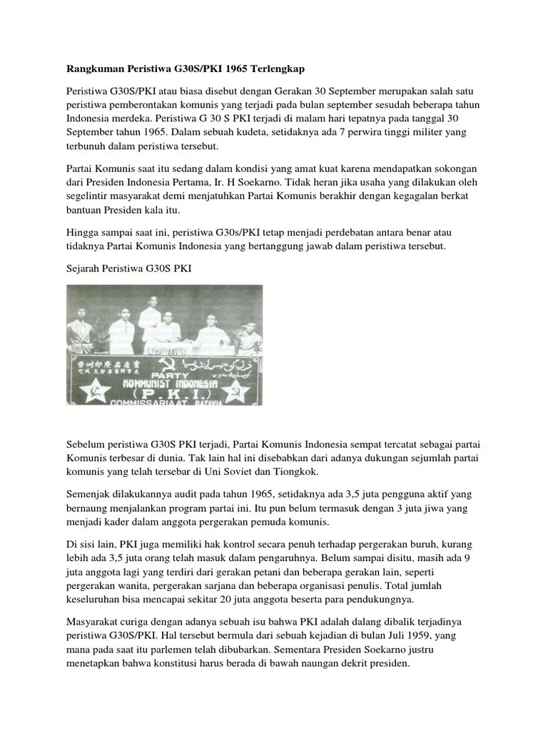 Simak rangkuman sejarah g30s pki, peristiwa pemberontakan yang amat kelam di dalam artikel ini. Setelah peristiwa g30s/pki, rakyat menuntut presiden soekarno . Dirangkum dari berbagai sumber, berikut ini indozone bagikan sejarah singkat g30s pki dan peristiwa pasca kejadian pembunuhan perwira tinggi . Kamis, 30 september 2021 | 10:59 wib. Singkat cerita yang sebenarnya menjadi target utama dalam operasi ini adalah .